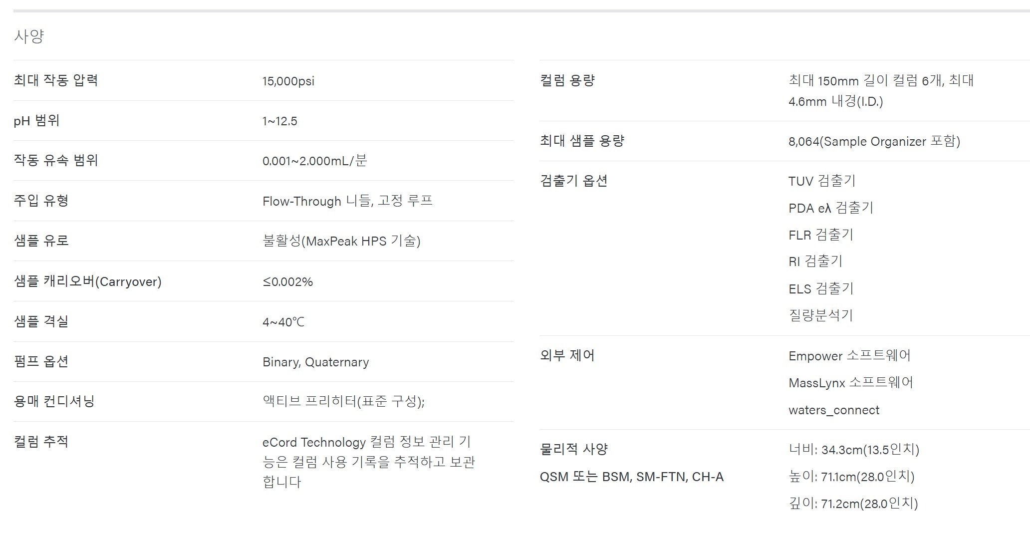 Empower, MassLynx, UNIFI 옵션을 지원하는 다중 소프트웨어 플랫폼입니다