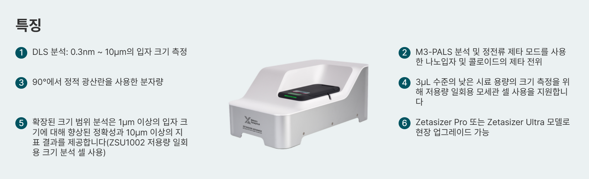 이는 적응형 상관 관계, M3-PALS 및 정전류 제타 모드뿐만 아니라 ZSU1002 모세관 셀과 함께 사용할 때 확장된 크기 범위 분석을 통합합니다.
