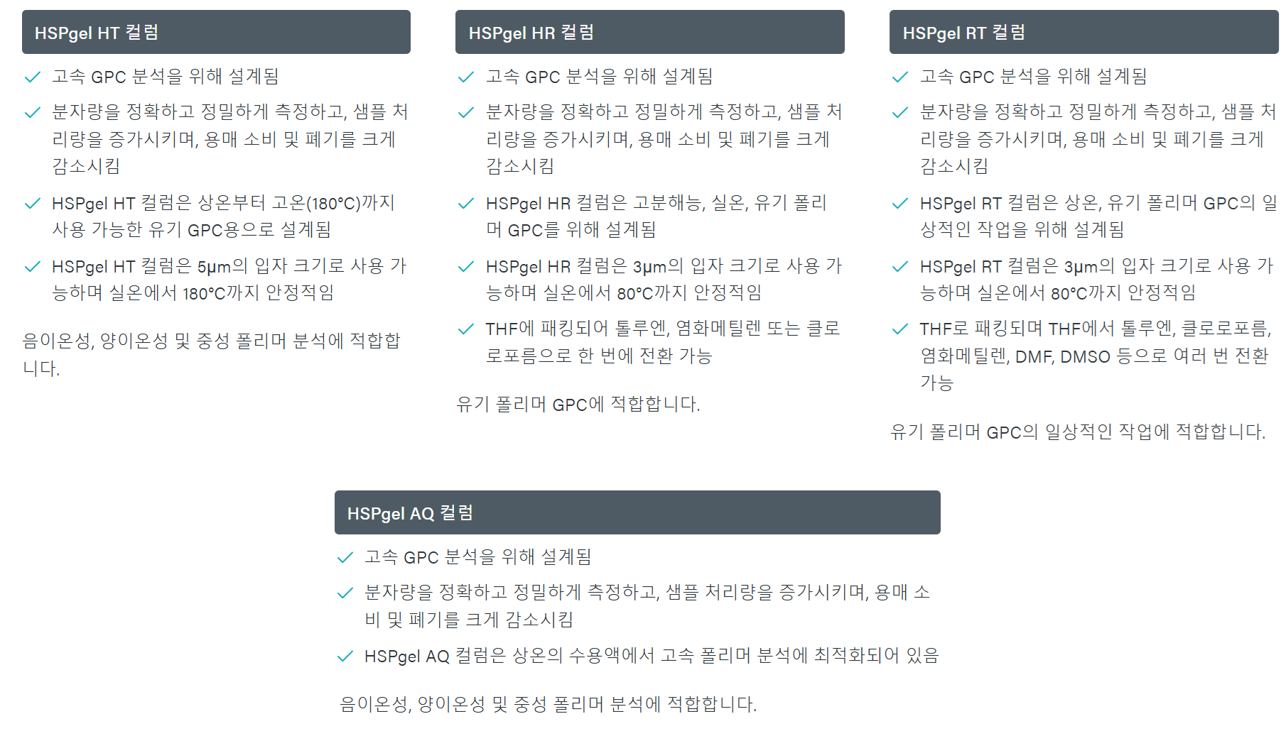 • ※ 고속 유기 GPC 분석을 위한 HSPgel 컬럼