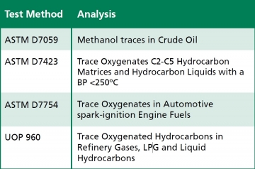 - Analysis of individual oxygenates in various hydrocarbon matrices down to 100 ppb